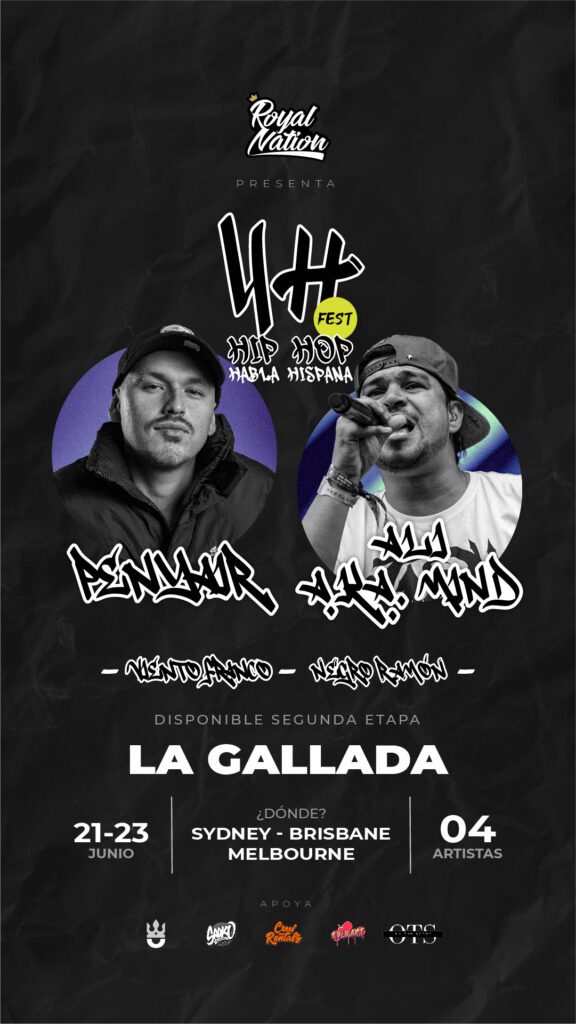 ¡No te pierdas la oportunidad de ser parte de esta noche única de música, arte y parche! «4H Fest» promete ser el evento del año para todos los oyentes de Hip Hop Habla Hispana en Australia.