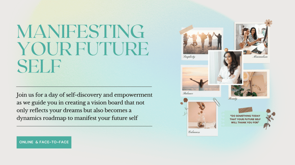 Únete a nosotros para un día de autodescubrimiento y empoderamiento mientras te guiamos en la creación de un Vision Board que no sólo refleja tus sueños, sino que también se convierte en una hoja de ruta dinámica para manifestar tu futuro yo.