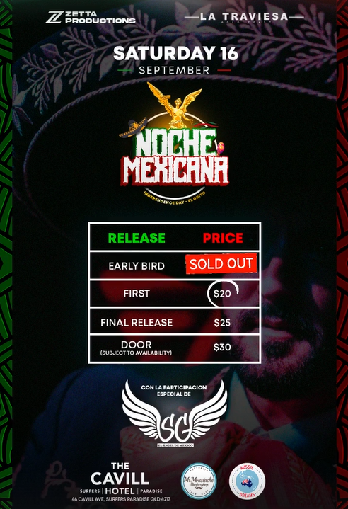 ¡Qué onda, banda! 🎶 Este 16 de Septiembre, el autentico sabor de nuestra tierra Mexicana llega a Gold Coast por primera vez. Vamos a darle con todo para celebrar el grito de independencia en el emblemático Cavill Hotel.