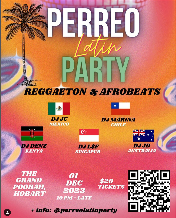 ¡Perreo Latin Party regresa con una edición de bienvenida al verano en Hobart! Únete a nosotros el viernes 1 de diciembre en The Grand Poobah Bar a partir de las 10 pm hasta tarde, con la mejor selección de Reggaeton y Afrobeats presentada por nuestros DJs locales.